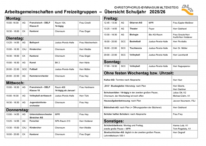 Der aktuelle AG-Plan wird in der Regel in den ersten Schulwochen veröffentlicht.